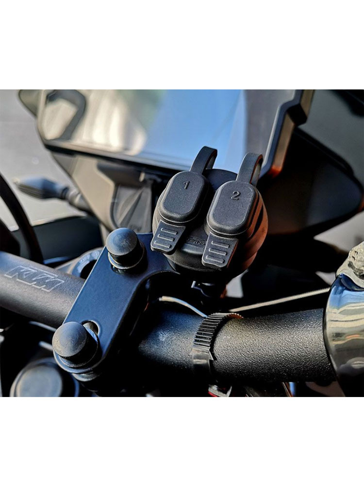 Ładowarka Dual USB Touratech z mocowaniem nad zaciskiem kierownicy