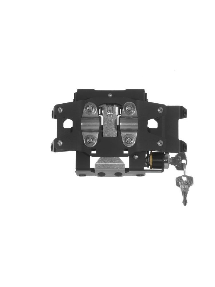 Uchwyt bazowy z listwą zasilającą i przyciskami sterującymi z boku, który jest dostarczany z BMW Navigator, jest zintegrowany z uchwytem kierownicy Touratech.