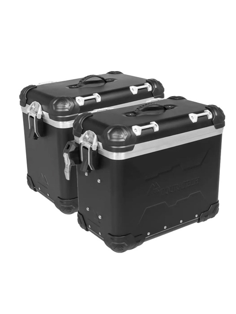 Zestaw kufrów bocznych aluminiowych Touratech ZEGA Evo "And Black" czarnych [prawy: 31l; lewy: 38l]