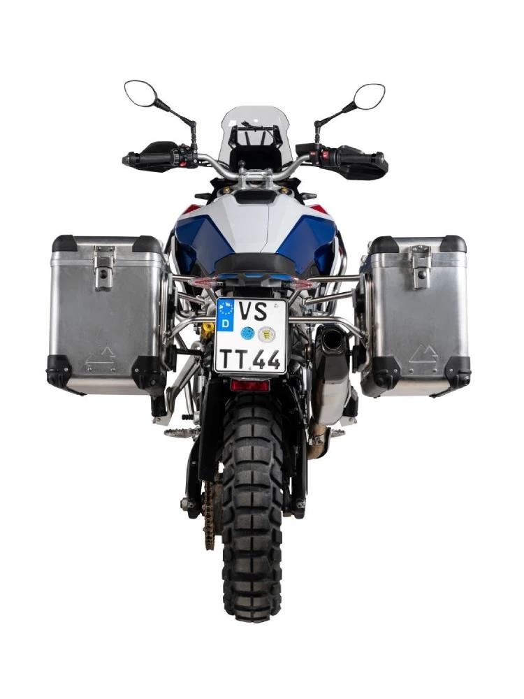 Zestaw: kufry boczne aluminiowe srebrne Zega Pro + stelaże srebrne Touratech BMW F 900 GS (24-) [poj.: 38+45l]