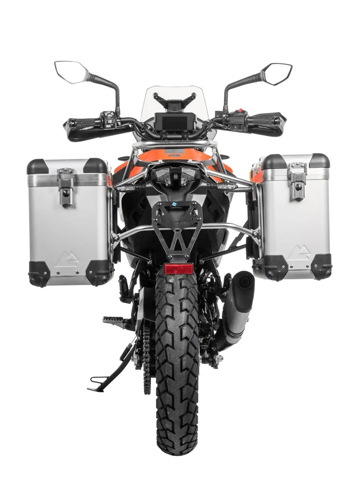 Zestaw: kufry boczne srebrne "And-S" Zega Pro + stelaże srebrne Touratech KTM 390 Adventure [poj.: 31+38l]